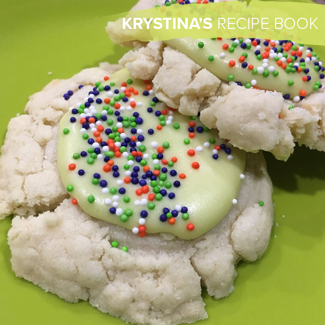Cream the butter, sour cream, and salt together. Add powdered sugar a little at a time, alternating with adding the milk. Add extra milk or powdered sugar if needed to reach your desired consistency. Add food coloring and vanilla and mix until combined. Using a rubber spatular add a big dollop of icing onto each cookie. Then add the sprinkles. These cookies are served chilled because of the sour cream in the frosting.