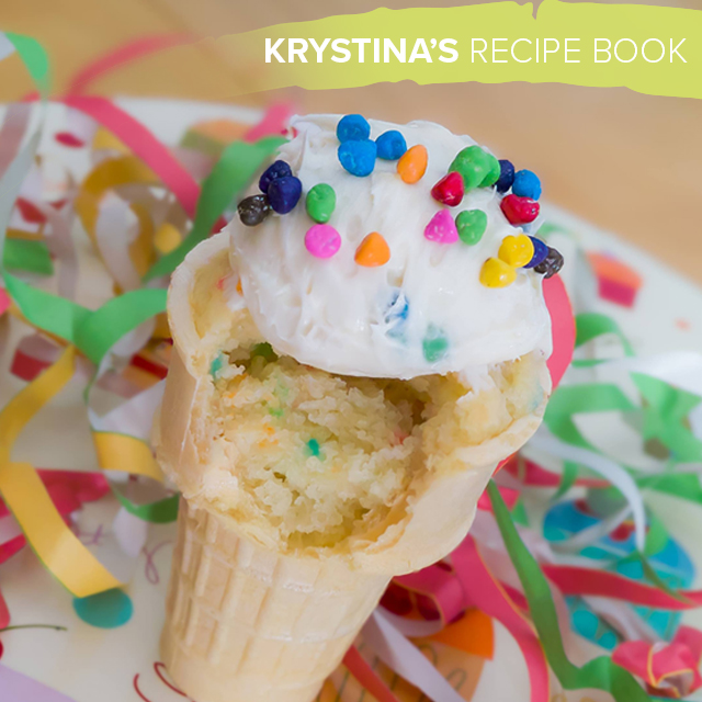 Heat oven to 350°F. Make cake batter as directed on the box. Place 12-15 cones in a 9X13 metal baking dish standing up. Divide batter evenly among the ice cream cones filling them 2/3 of the way full. Bake 16 to 22 minutes or until toothpick inserted in cake comes out clean. Cool completely, about 30 minutes. Generously frost cake with frosting, and add sprinkles.
