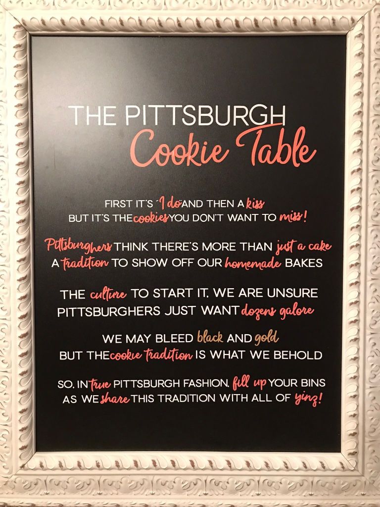 Our wedding cookie table had 35 different kinds of cookies, which was about 5,000 in total!!! This wedding tradition is part of our regional culture, just as much as cheering for the black and gold.