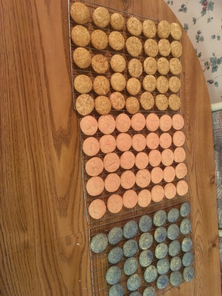 To make the cookie dough – Mix the baking powder, salt, and flour in a small bowl and set aside. Using a electric mixer, combine the eggs, sugar, butter, and extract on medium speed for about 2 minutes until light and fluffy. Add the flour/baking powder and combine slowly just until mixed. Using a tablespoon, roll the dough into balls and place onto a parchment lined baking sheet, about 1 inch apart. Chill in the refrigerator for at least an hour. When ready to bake, preheat oven to 350F, and then bake for 10 to 12 minutes.